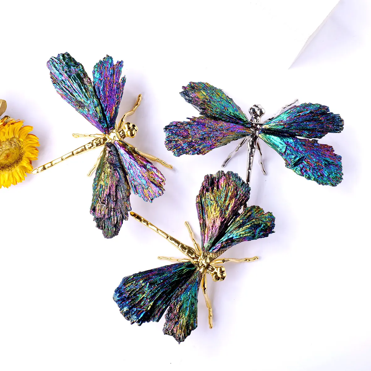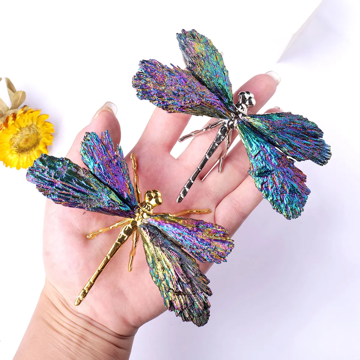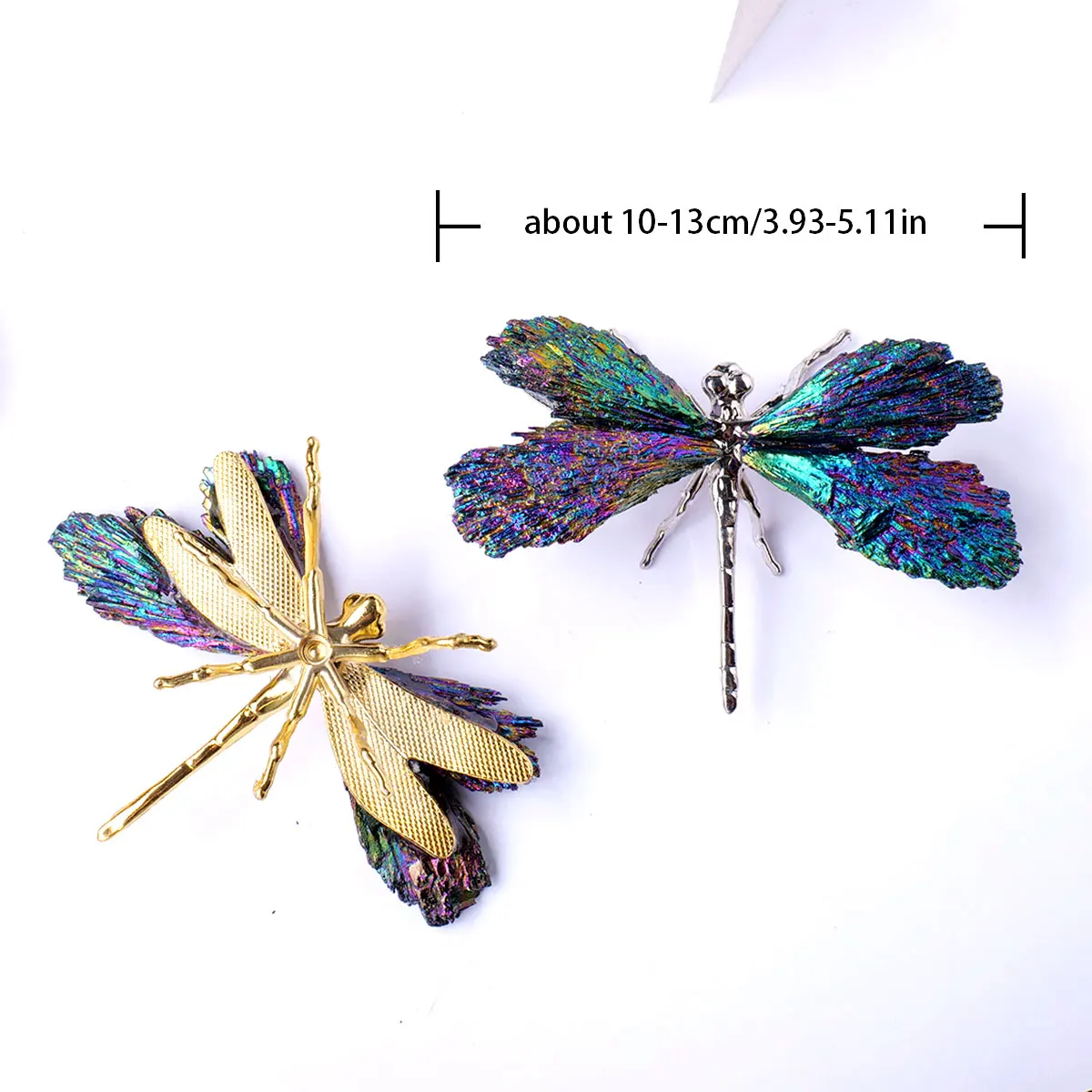 1PC Natural Crystal Electroplate Tourmaline Coloer Feathered Dragonfly Creative Handicraft Jewelry Healing Decoration Gift