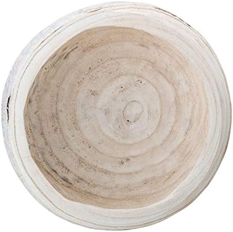 Bloomingville Decorative Hand-Carved Paulownia Wood Bowl, Whitewashed, 10.5 in Diameter, 4.25 in Tall